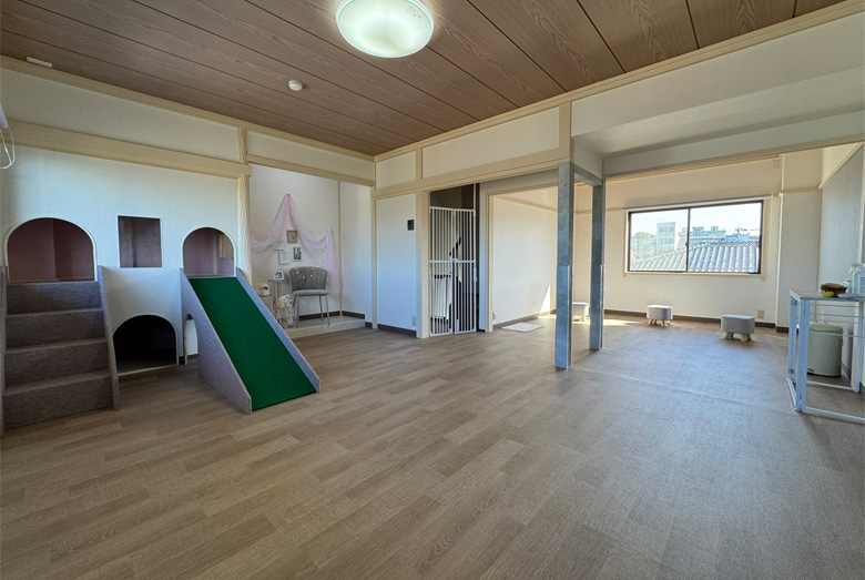 野町店3階にある室内ドッグラン。ワンちゃんのペースで自由にゆっくり楽しめます。ご予約なしでの当日ご来店大歓迎です!ぜひお気軽にお立ち寄りください。